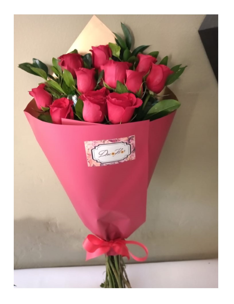 BOUQUET DE 12 ROSAS ROJAS Y FOLLAJE